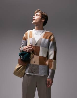 Topman - Vest met blokjesprint in bruin