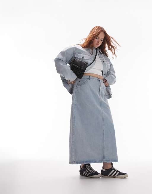 Topshop - Curve - Denim midi-rok in gebleekte wassing