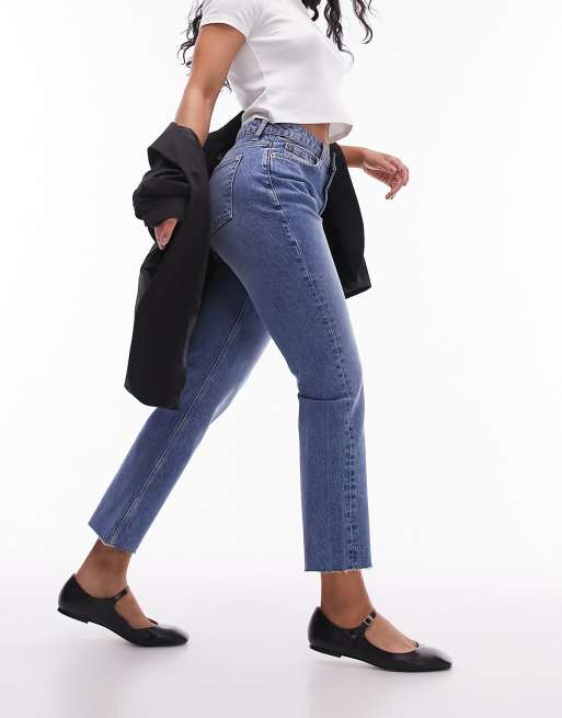 Topshop - Hourglass - Rechte cropped jeans met halfhoge taille en onafgewerkte naden in middenblauw