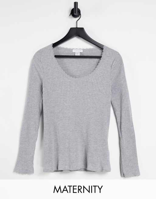 Topshop Maternity - Pointelle top met lange mouwen en kanten randje in grijs