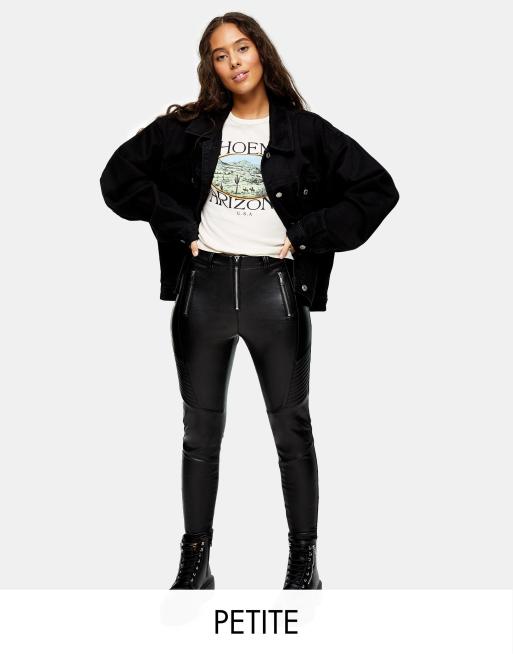 Topshop Petite - Bikerbroek van imitatieleer in zwart