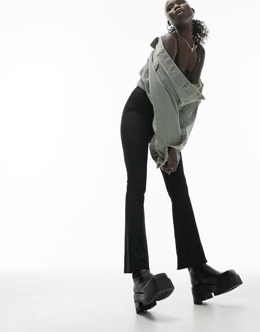 Topshop Petite - Geribbelde skinny flare-broek in zwart