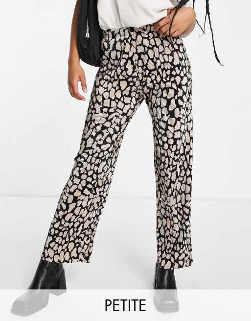 Topshop Petite - Plissé broek met wijde pijp en giraffeprint in zwart-wit