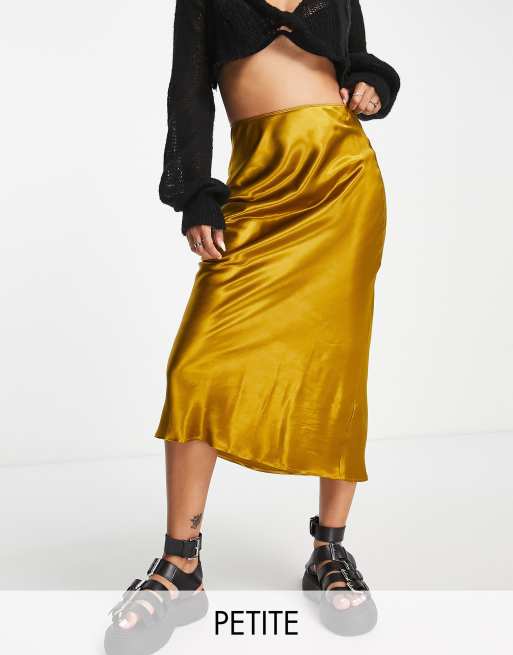 Topshop Petite - Schuingesneden midirok in mosterdgeel