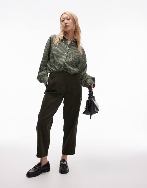 Topshop Petite - Smaltoelopende broek van corduroy in kaki