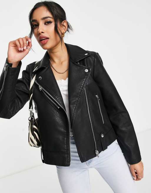 Topshop Petite - Stoere jack van imitatieleer in zwart