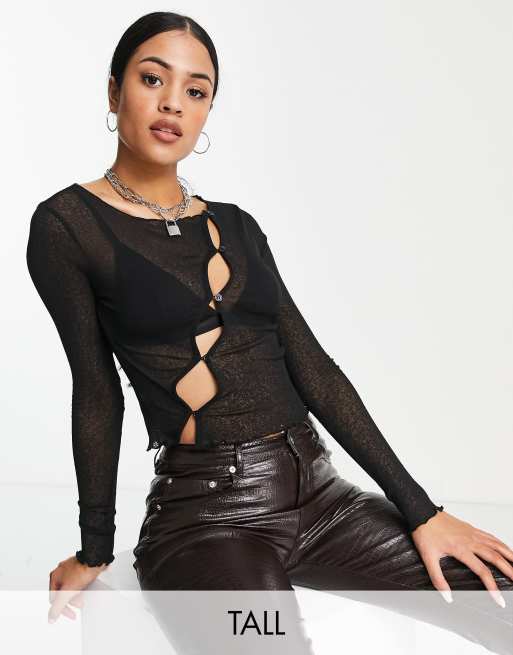 Topshop Tall - Asymmetrische top van mesh met knoopsluiting in zwart