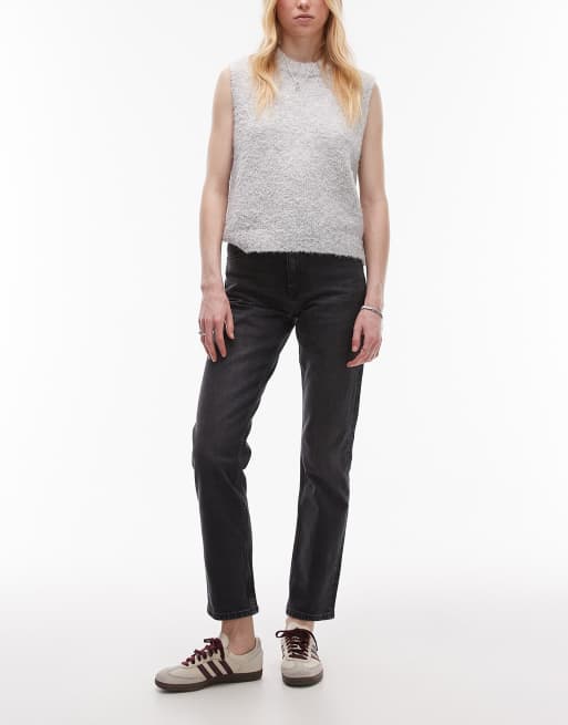 Topshop Tall - Cropped rechte jeans met halfhoge taille in zwart met wassing