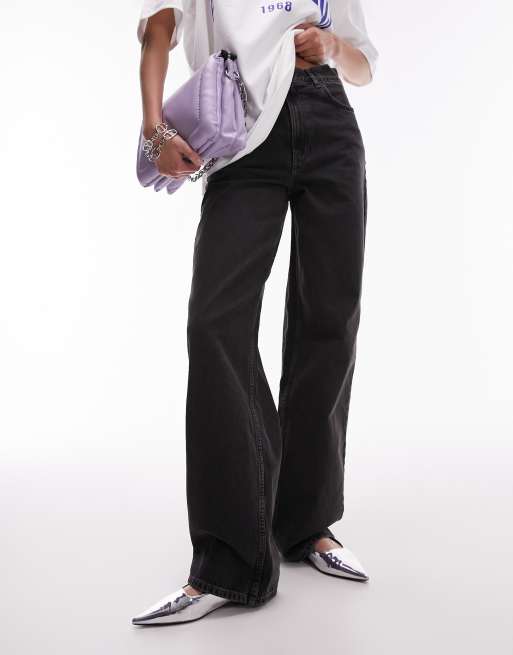 Topshop Tall - Gilmore - Boyfriend jeans met lage taille in zwart met wassing