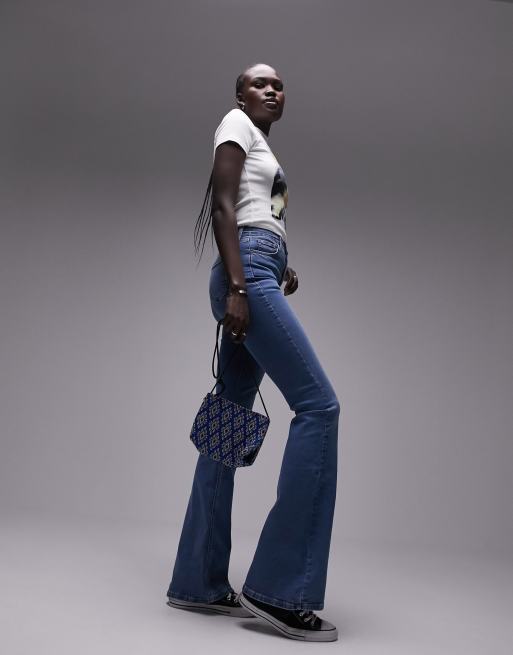 Topshop Tall - Jamie - Flared jeans in middenblauw