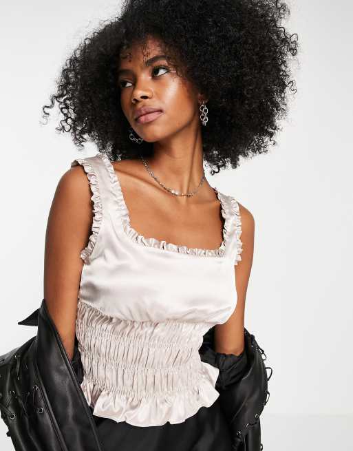 Topshop - Aangerimpelde satijnen cami in champagnekleur