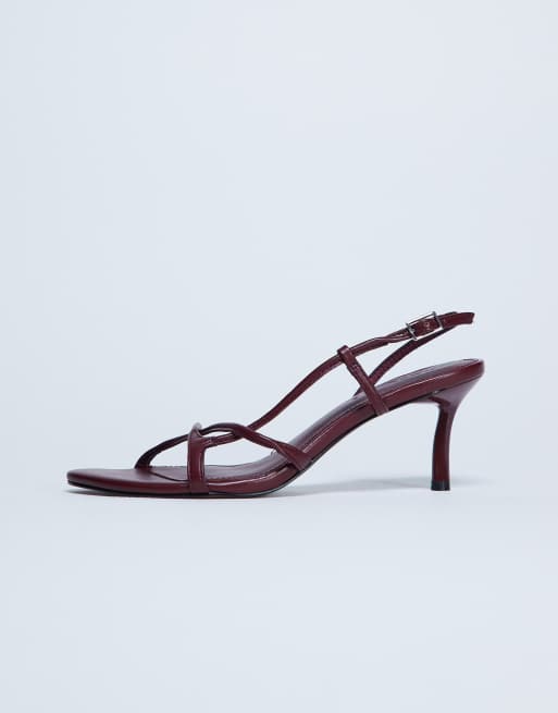 Topshop - Amelia - Minimalistische sandalen met halfhoge hak in bordeauxrood
