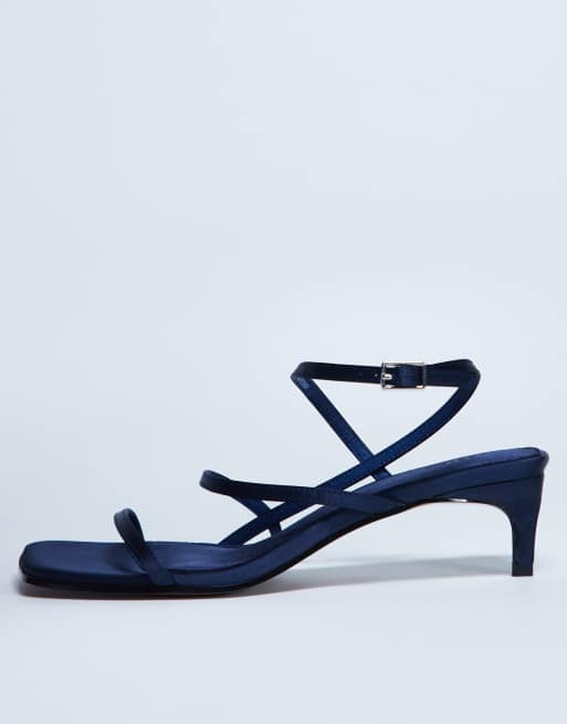 Topshop - Autumn - Minimalistische sandalen van satijn met halfhoge hak in marineblauw