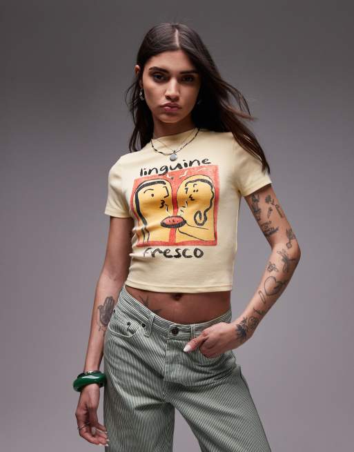 Topshop - Baby-T-shirt met grafische linguine-print in lichtgeel