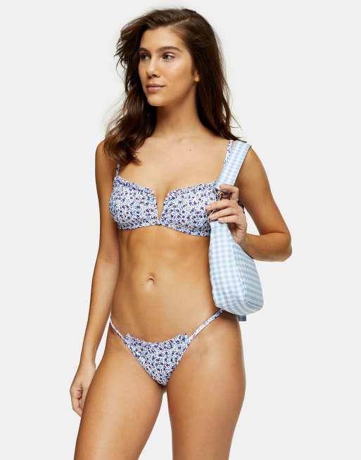 Topshop - Bikinibroekje met ruches in fijne witte bloemenprint