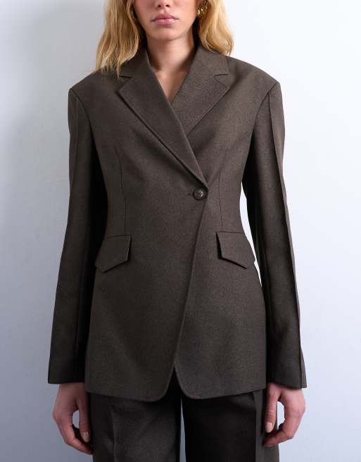 Topshop - Blazer met asymmetrische overslag en siernaden in bruin, deel van co-ord set