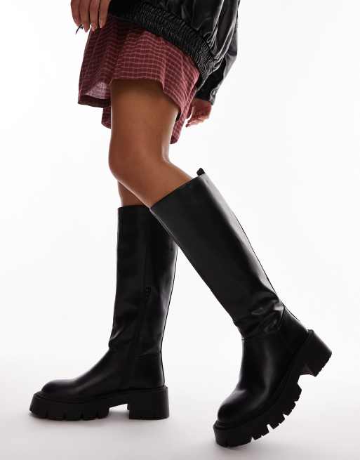 Topshop - Brede Pasvorm - Riya - Kniehoge laarzen met dikke zool in zwart