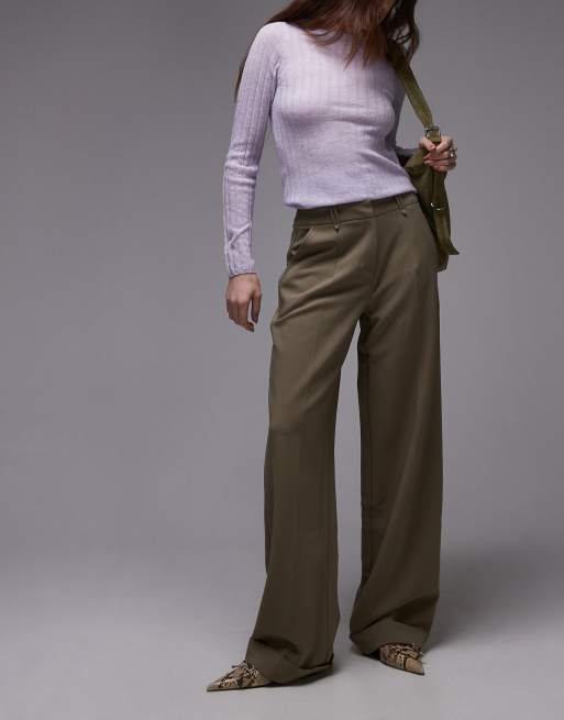 Topshop - Broek van keperstof met rechte pijpen in oesterzwam
