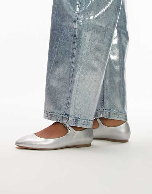 Topshop - Caitlin - Smalle ballerina's met vierkante neus in zilver
