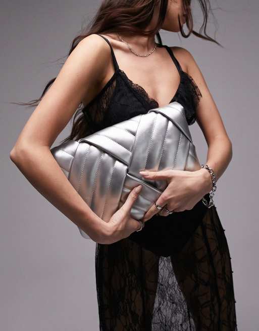 Topshop - Callie - Geweven gewatteerde clutch in zilver