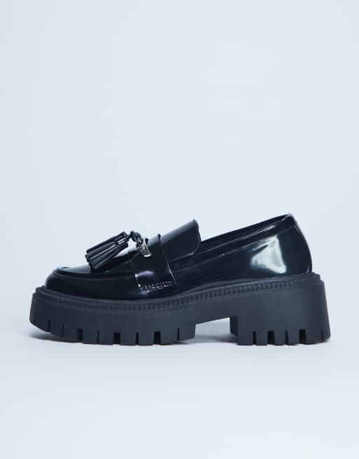 Topshop - Cameron - Loafers met kwastjes en zool met profiel in zwart