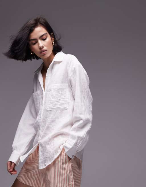 Topshop - Casual katoenen overhemd in ivoorwit