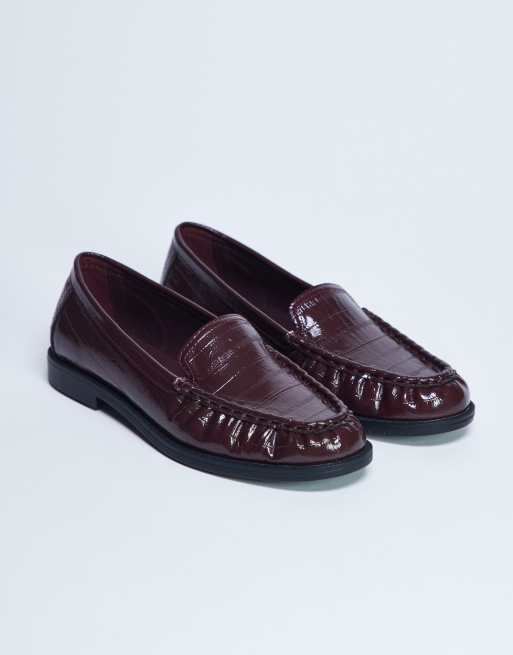 Topshop - Coby - Loafers met rimpels in bordeauxrood met krokodillenprint