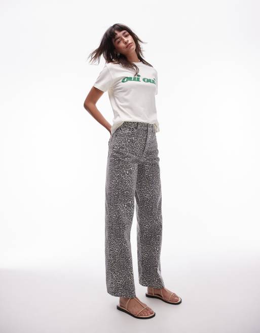 Topshop - Column - Jeans met halfhoge taille in luipaardprint