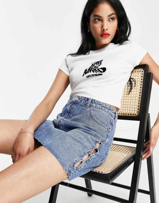 Topshop - Denim minirok met keyhole uitsnijdingen in middenblauw