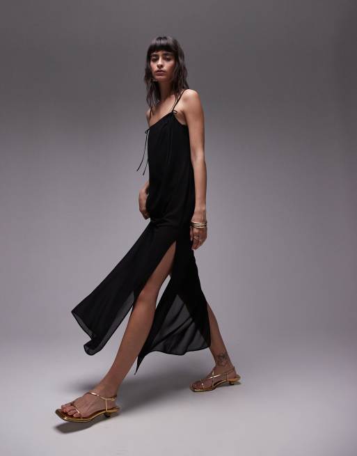 Topshop - Doorschijnende midi jurk met strikje in zwart