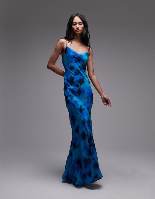 Topshop - Dubbellaagse cami jurk in zachtblauwe bloemenprint