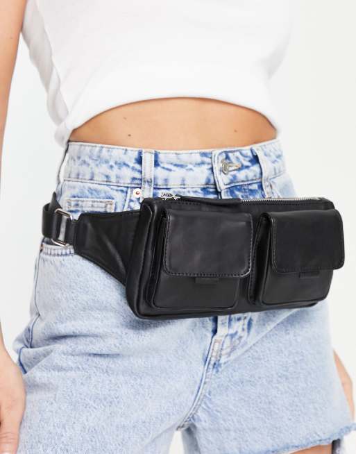 Topshop = Effen leren heuptasje met twee zakken in zwart
