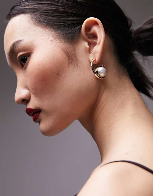 Topshop - Enya - Oorringen met ingekapselde parel in goudkleur