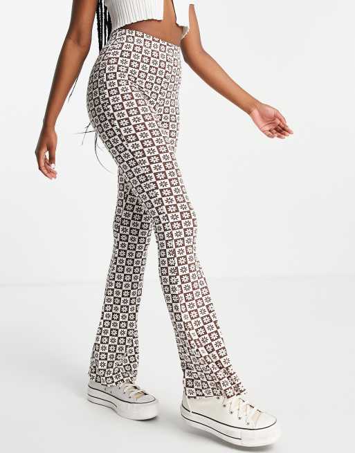 Topshop - Flare-broek met gebloemd dambordpatroon in zwart-wit, deel van co-ord set