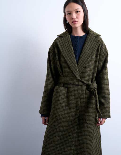 Topshop - Geborstelde nette geruite jas in groen