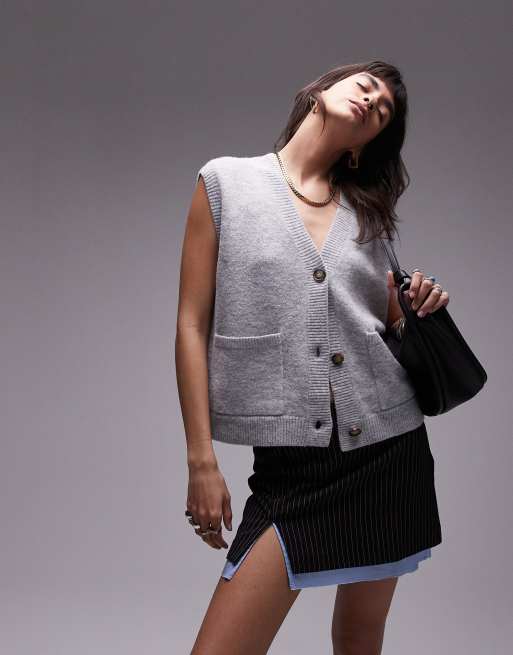 Topshop - Gebreid gilet met zakdetail in lichtgrijs