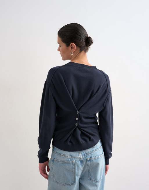 Topshop - Gebreide trui met knopen aan de achterkant in marineblauw