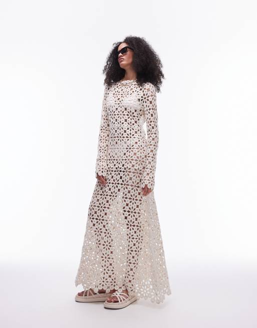 Topshop - Gehaakte en gebreide maxi-jurk met lange mouwen in crème