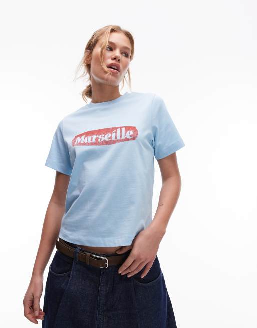 Topshop - Gekrompen top met Marseille print in blauw