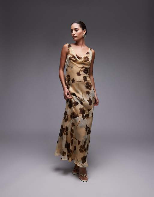 Topshop - Gelaagde maxi-jurk met gedrapeerde halslijn in vaalgeel met bloemenprint