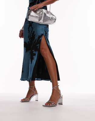 Topshop - Georgina - Sandalen met brede pasvorm, bandjes en hak in zilver