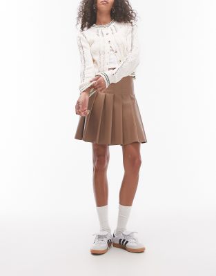 Topshop - Geplooide minirok van imitatieleer in koffiebruin