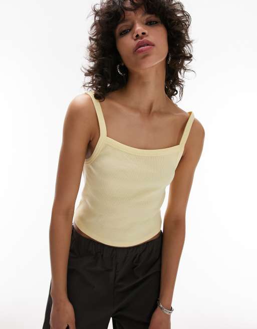 Topshop - Geribbeld hemdje in citroengeel