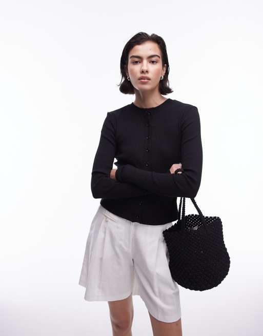 Topshop - Geribbeld micro vest met lange mouwen in zwart