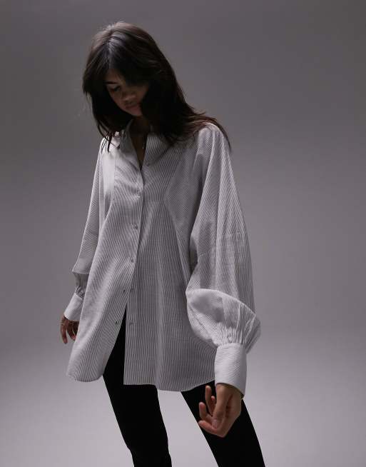 Topshop - Gestreept overhemd van kaasdoek met afgeschuinde armsgaten in blauw