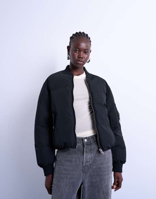 Topshop - Gewatteerd hybride bomberjack in zwart