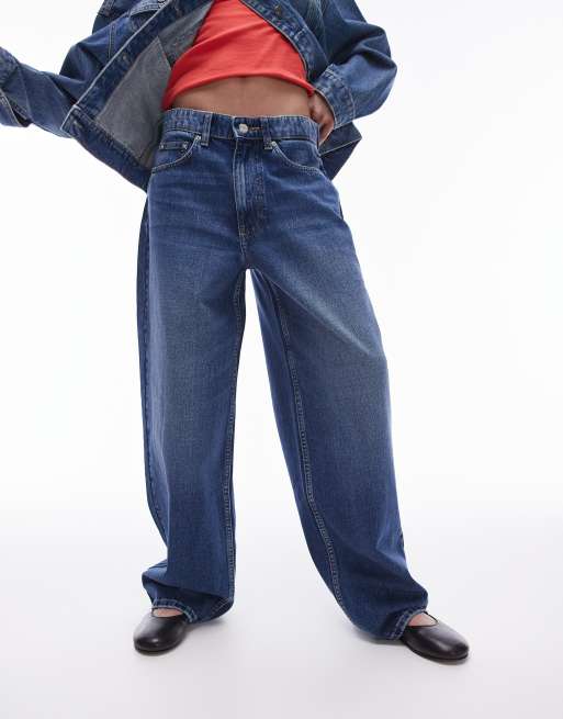 Topshop - Gilmore - Boyfriend jeans met lage taille in rijkblauw
