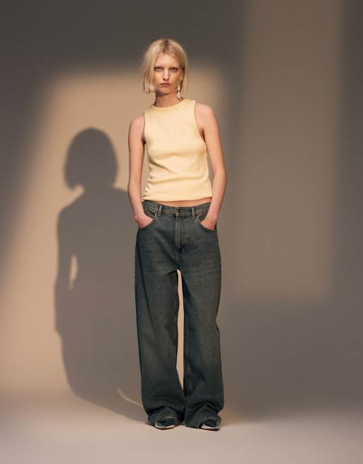 Topshop - Gilmore - Boyfriend jeans met lage taille in zwavelblauw