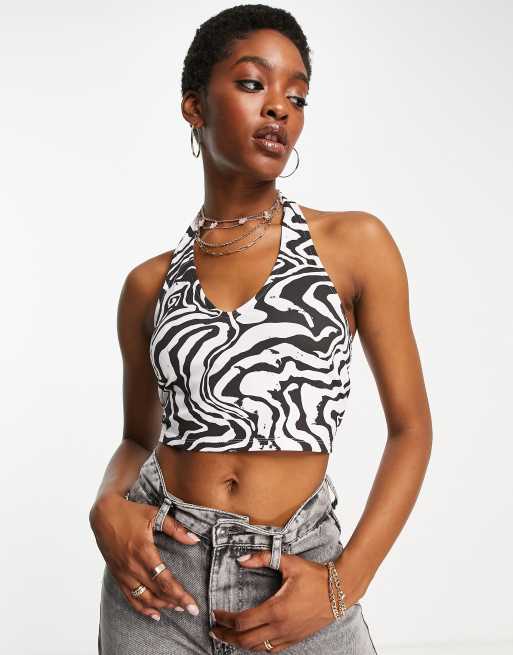 Topshop - Halter crop top met zwart-witte zebraprint