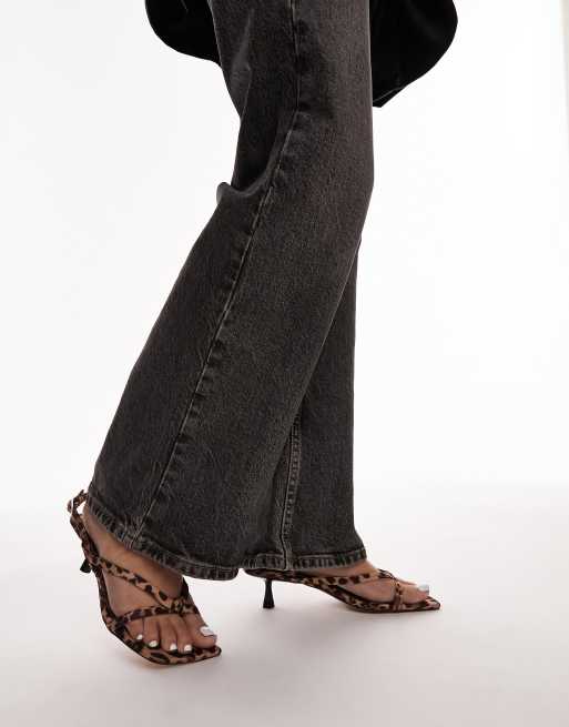 Topshop - Issy - Teensandalen met hak en smalle bandjes in luipaardprint
